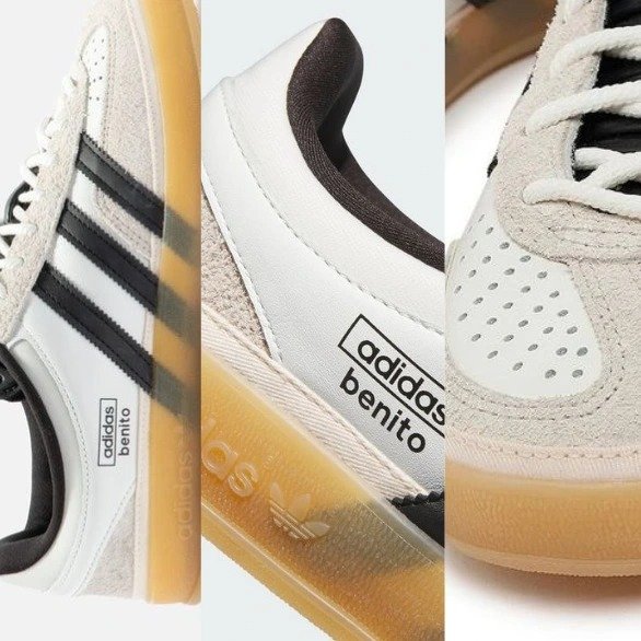– Detalles en cuero: Algunas versiones incorporan detalles en cuero lujoso, especialmente en las tres franjas laterales y otras áreas específicas del diseño.