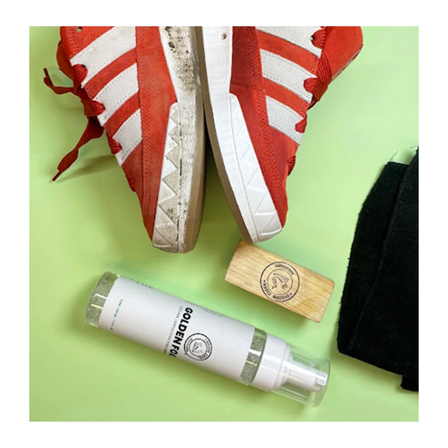 1. Aplique el GOLDEN FOAM directamente sobre tus sneakers o sobre el cepillo de limpieza para sneaker