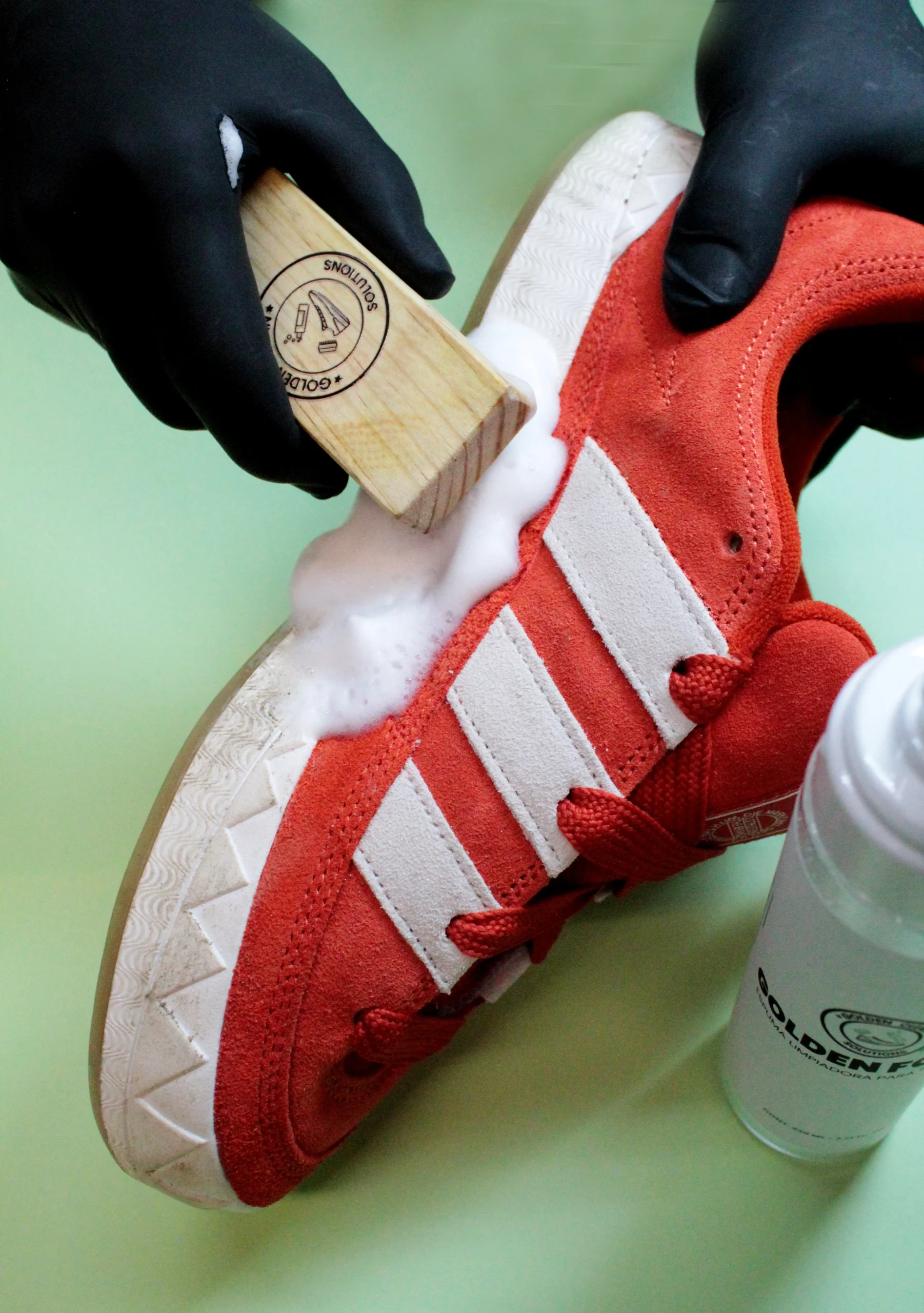 Tus sneakers merecen el mejor cuidado, y en Golden Clean Solutions nos aseguramos de que siempre luzcan impecables. Utilizamos productos de limpieza de calidad que también están a tu disposición, garantizando que cada par de tenis reciba el tratamiento adecuado para dejarlos como nuevos. No dejes que la suciedad opaque tu estilo: elige calidad, elige transformación, elige Golden Clean Solutions.